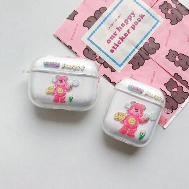 AirPods Pro ケース エアーポッズ プロ キャラクター おしゃれ かわいい ベアー クマ エアポッズ 1/2 世代 カバー 保護ケース ストラップ | plug case iPhoneカバー・AirPodsケース